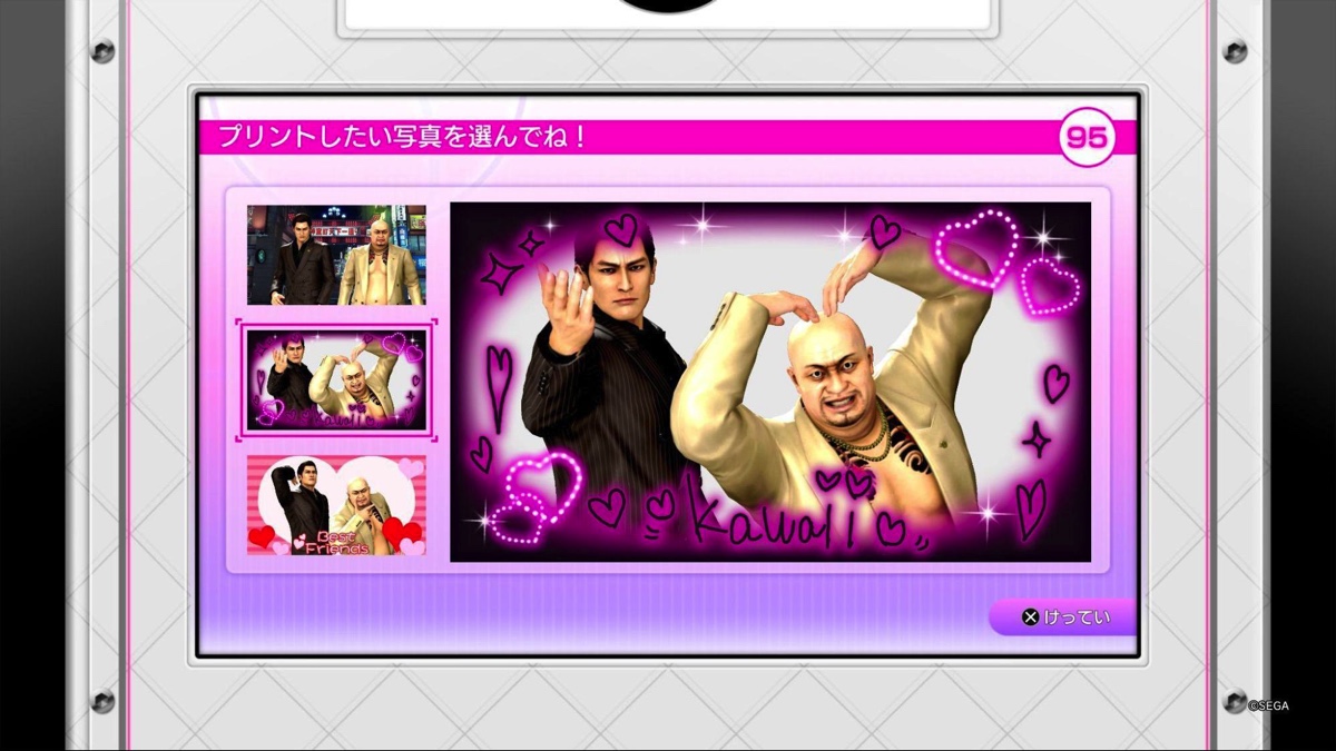 本作では、本編同様にカラオケやダーツといったアクティビティに峯の状態でアクセスすることができる。特に神田と一緒にカラオケを歌ったり、プリントシール機を撮ったりできるのが良かった。本シリーズは本編の死闘や裏切り合いとはまったく別の温度感で、キャラクター同士のユニークな掛け合いが見られるところがウリだと思うが、本作でもそれは健在である。