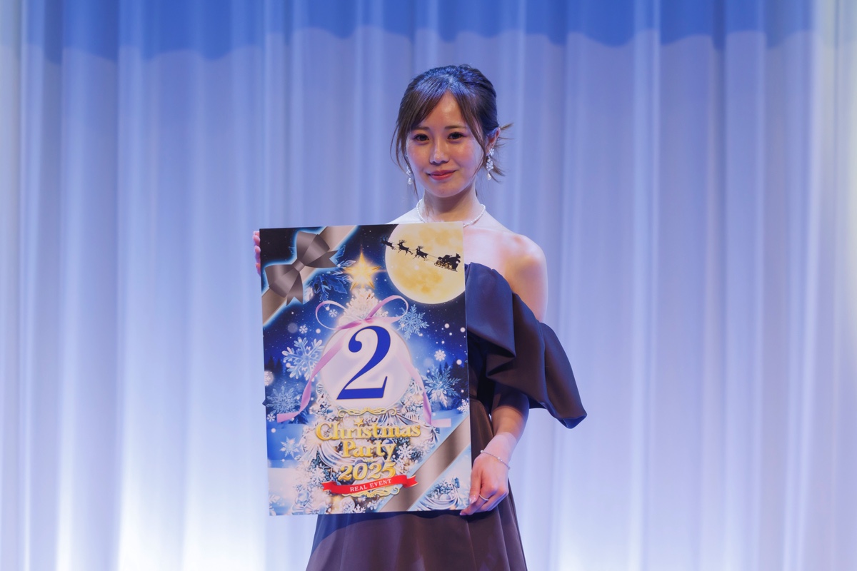 「2位ありがとうございます。普段は三重県の田舎で2人の子供を育てながら、地域の活性化活動をしています。昨日は子供たちにクリスマスプレゼントを届けてから、東京まで駆けつけてきました。またこの表彰台に立てるとは思っていなかったので、本当に嬉しいです。これからもライブ配信やさまざまな活動を通して、三重県の魅力を発信していける存在になりたいと思っています。来年も応援していただけたら嬉しいです」