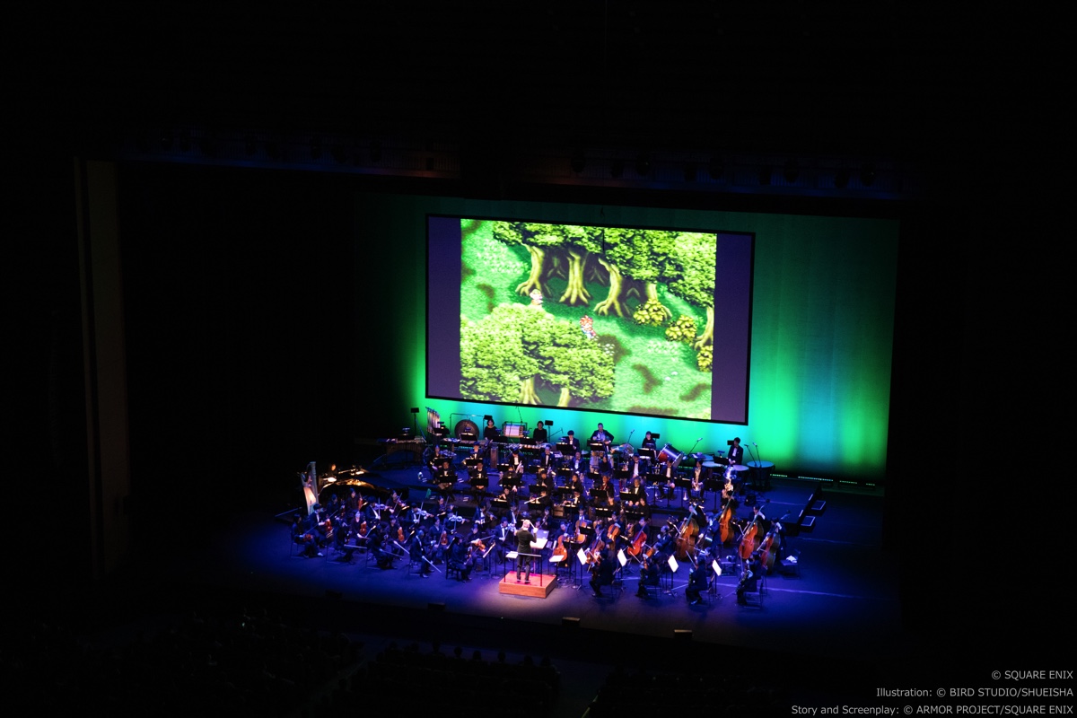 このあと訪れる至福の時を、先んじてダイジェストで紹介するような映像とともに演奏されたのは「クロノ・トリガー」。当時のゲームショップの店頭で流れるデモから聴こえていた印象的なフレーズはこの日、ホルンの重厚な音色と共に届けられた。