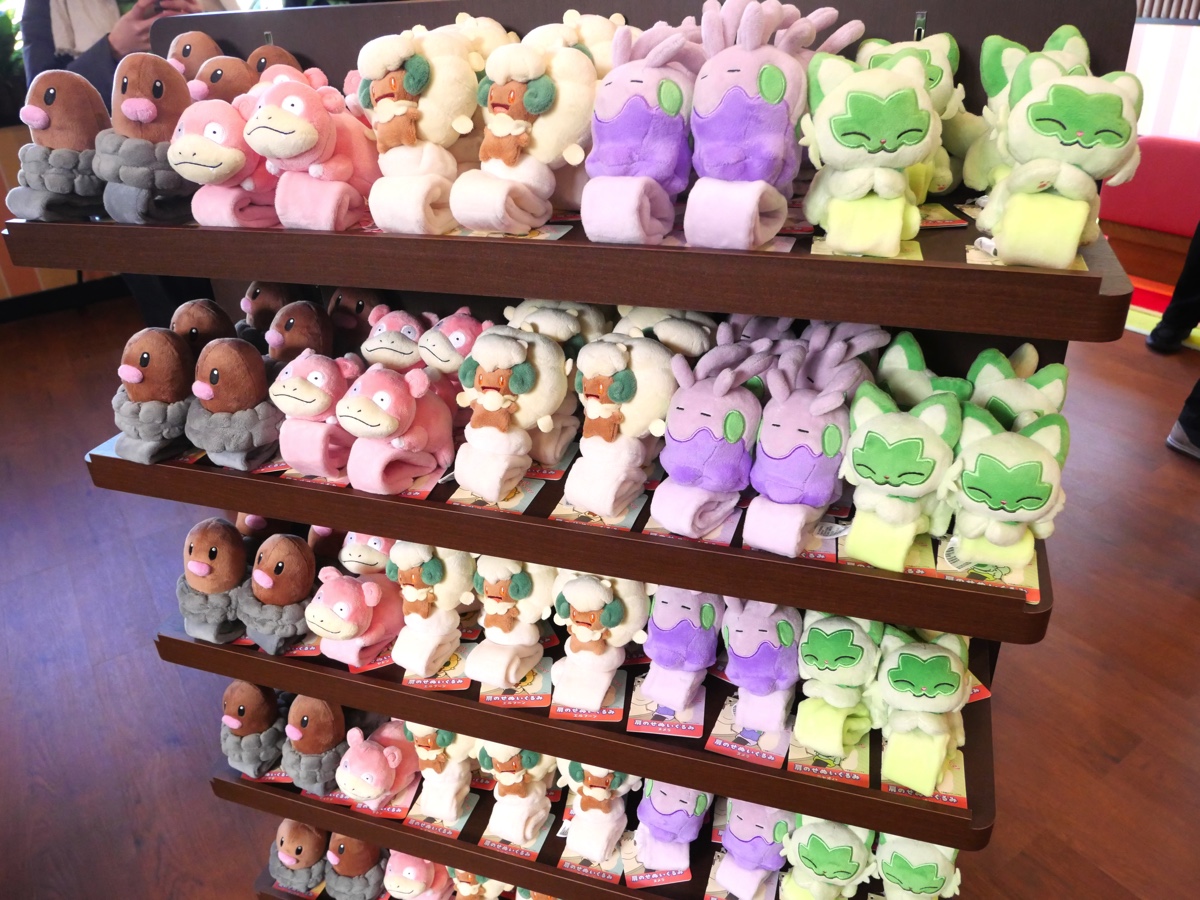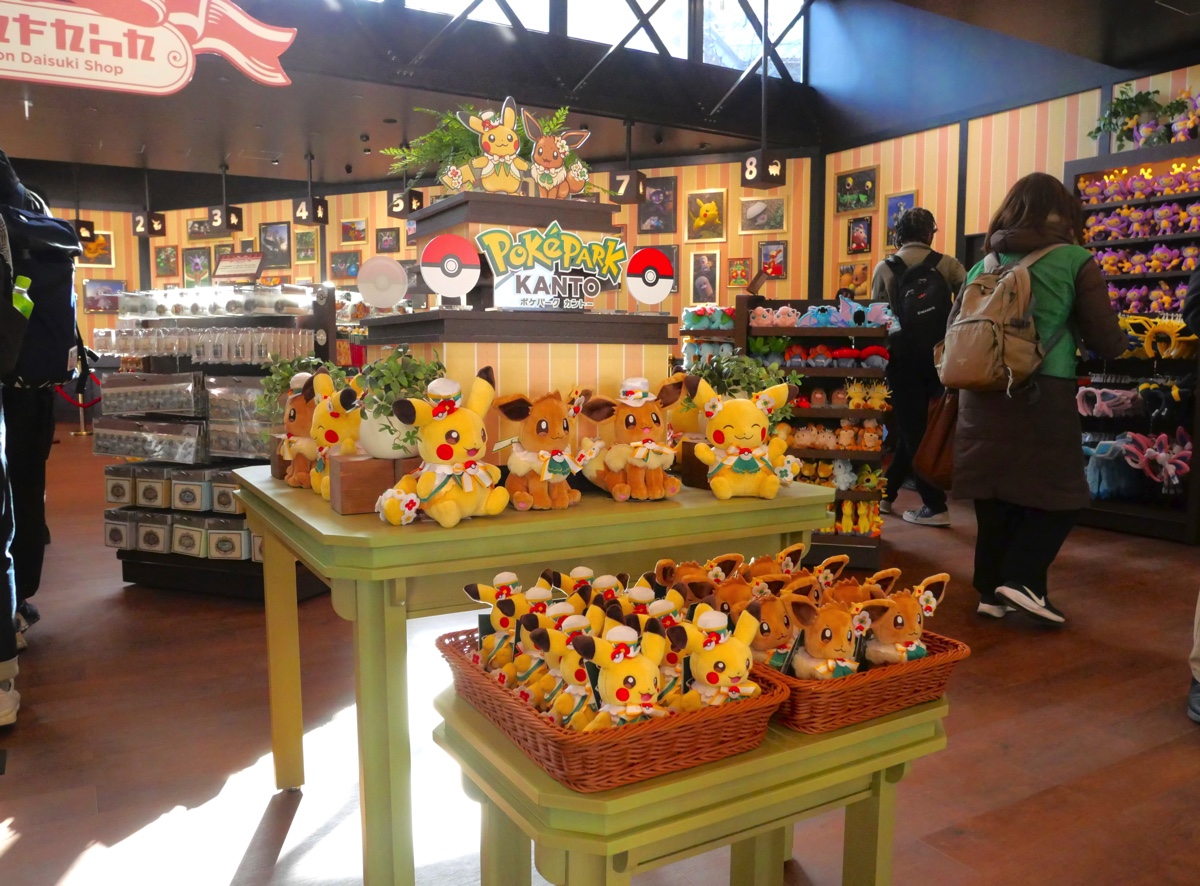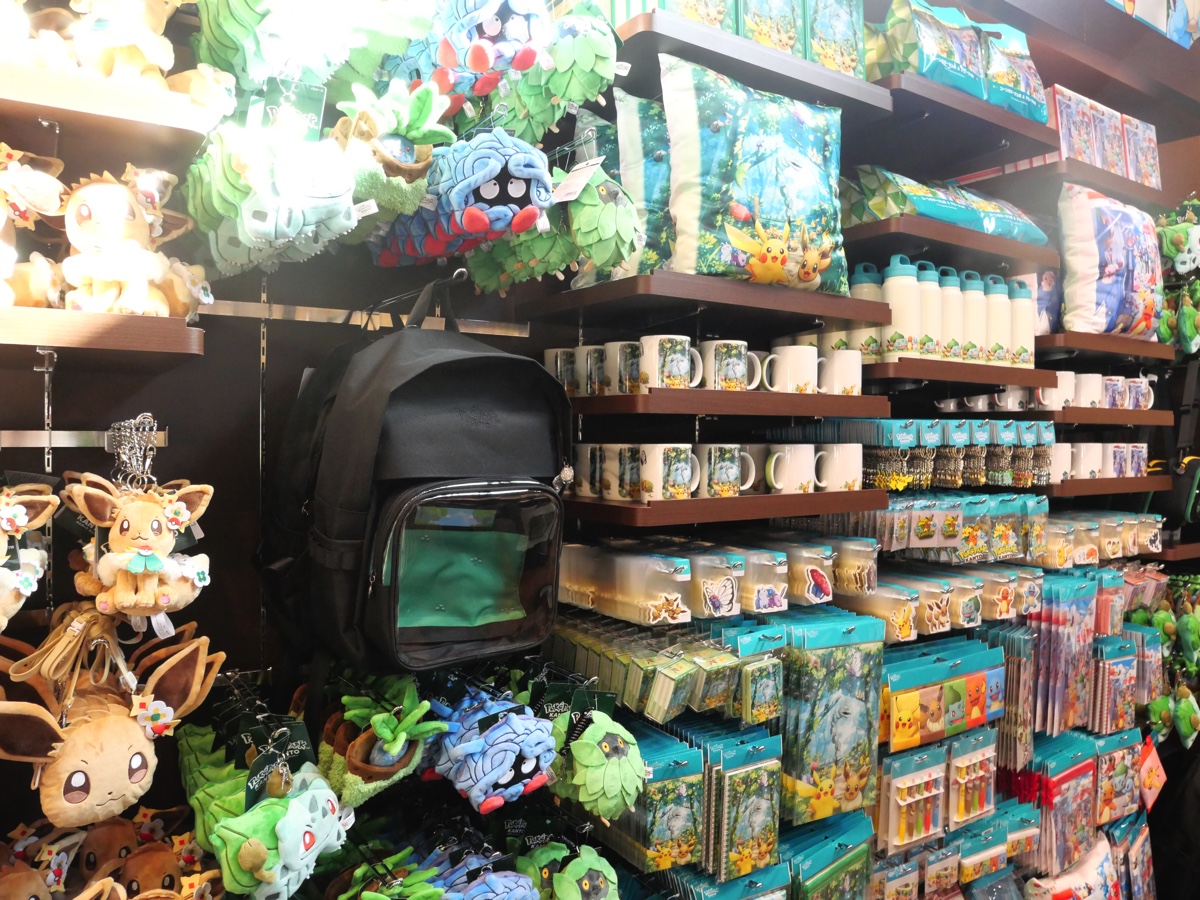 まずは『ポケモンだいすきショップ』から。グッズはピカチュウとイーブイ、そして“ブイズ”たちを中心に展開しており、かなりの種類が揃っている。“ブイズ”のグッズは金色が細部にあしらわれており、可愛いながらも上品な雰囲気だ。