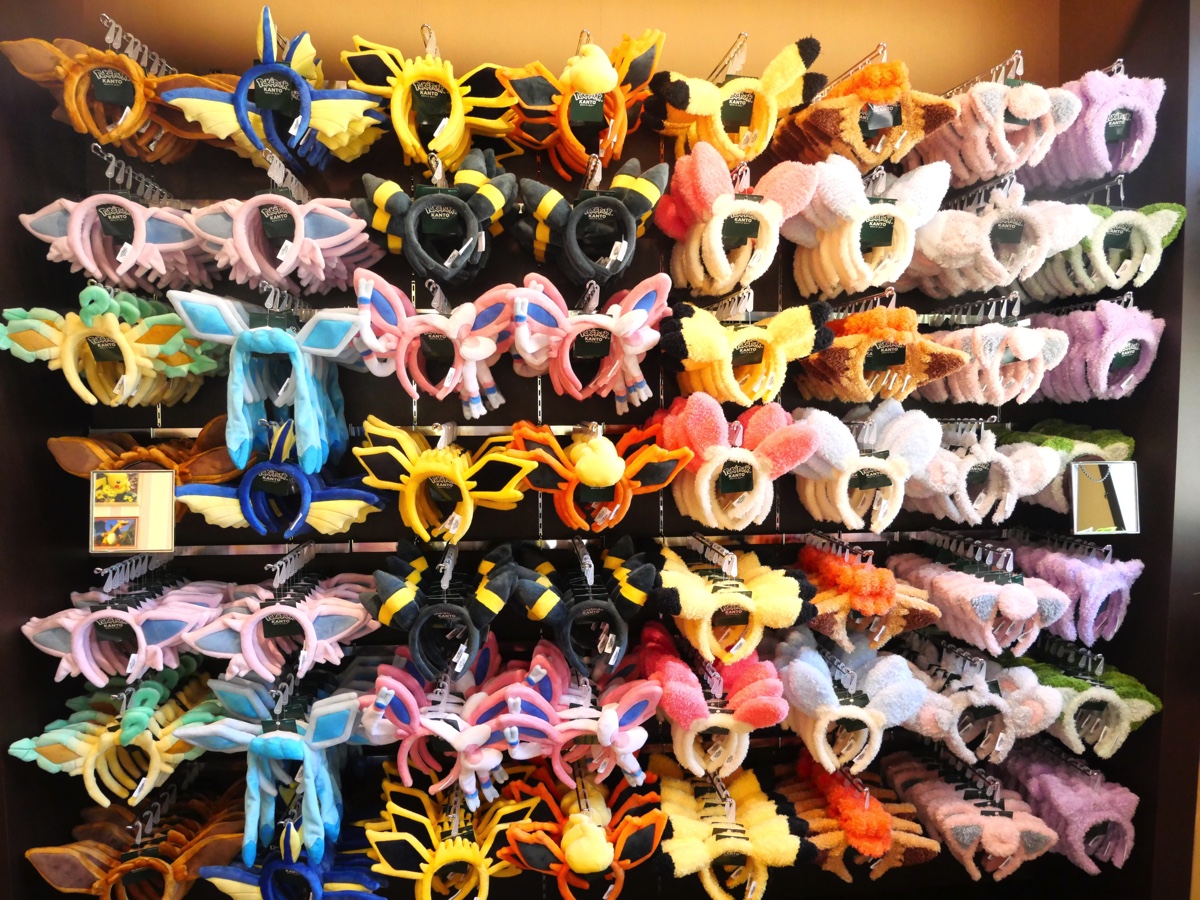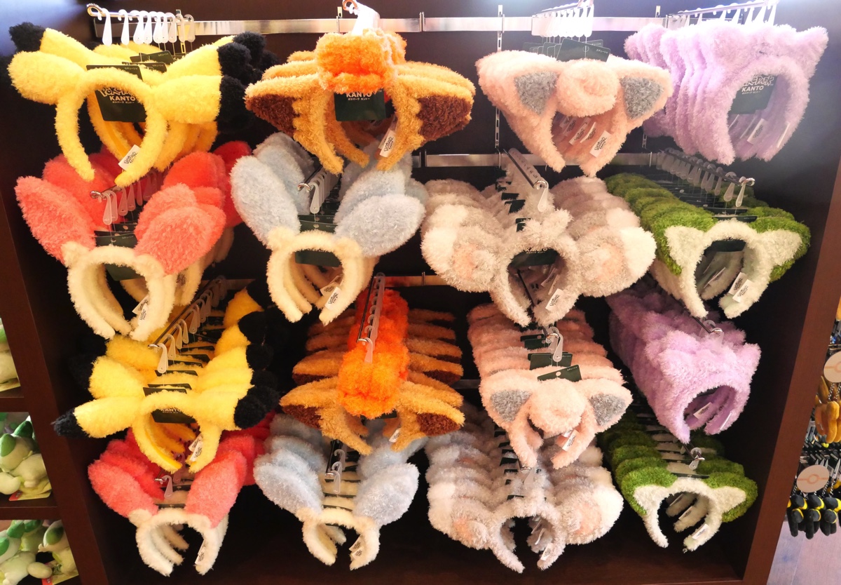 そして筆者の目をとくに引いたのは“被り物”だ。帽子タイプとカチューシャタイプが販売されていたのだが、チョイスされたポケモンのラインナップが絶妙で、迷ってしまう。