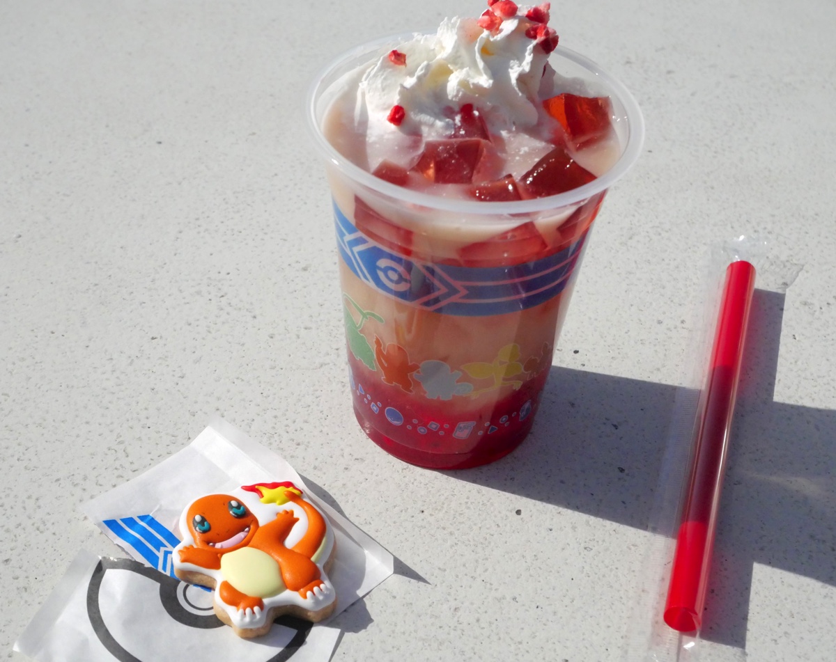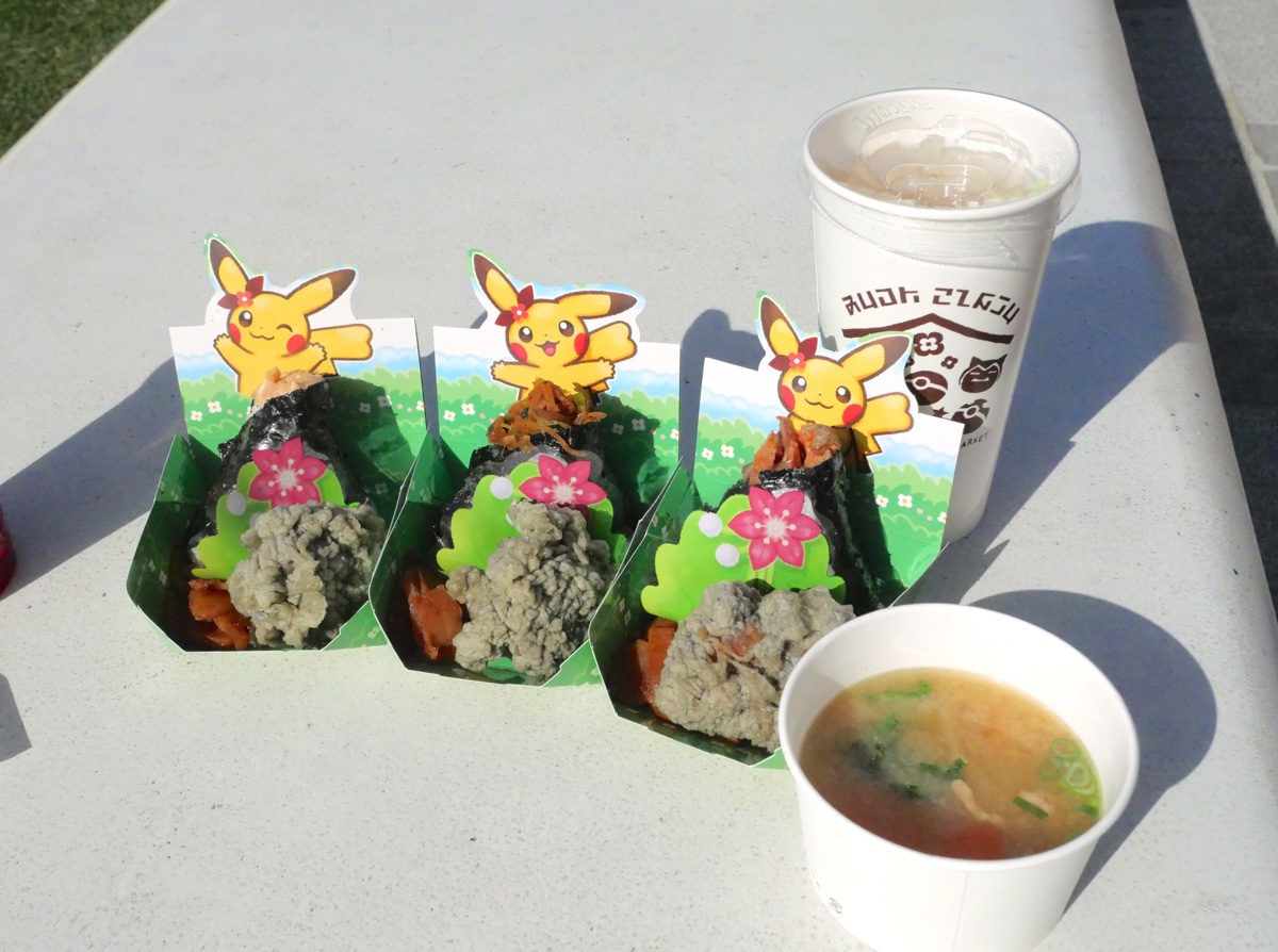 まず筆者が「カヤツリタウン」で注文したのは、『ピカチュウのおにぎりや』で販売している、おにぎり3種と、『フレンドリィショップ』で販売しているスペシャルドリンクだ。ほかにもポップコーンやホットドッグなどが販売されており、全体的に軽食のようなメニューが多かった印象だ。