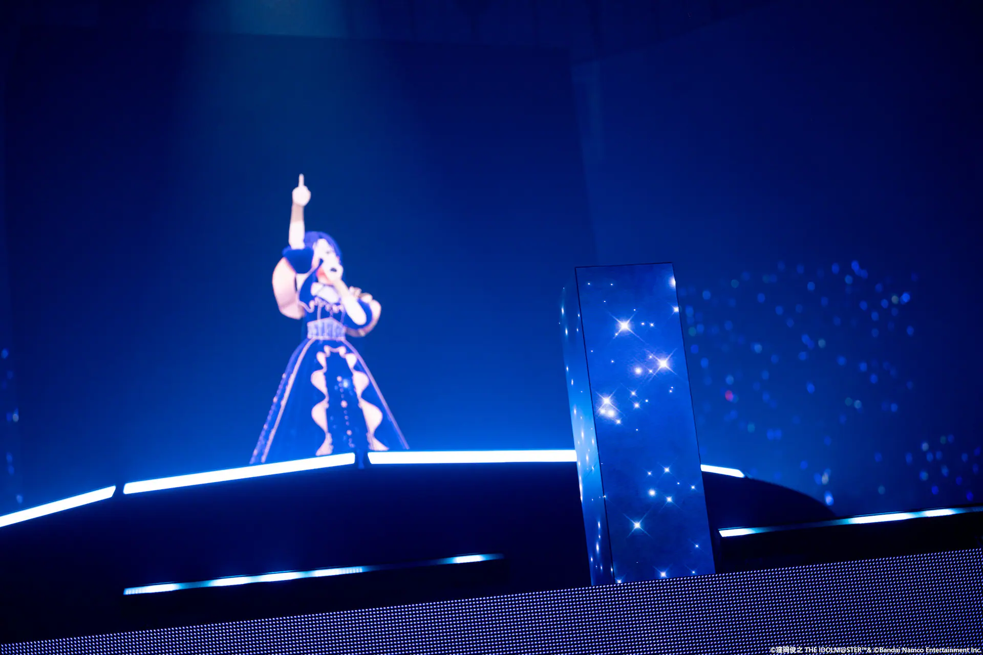続いて小型モデルもライブ後半で全機お目見えに。星海をテーマにしたパートでは星々を映しながらセンターステージの周囲を衛星のごとく駆け回ったり、『細氷』の歌唱時には氷柱をイメージしたと思われるビジュアルで回転したりと舞台を彩った。