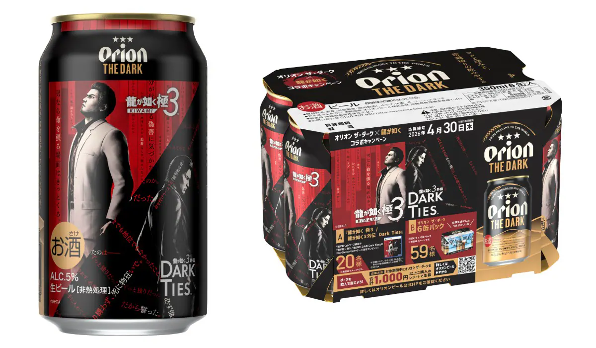 オリオンビールは「オリオン ザ・ダーク」と『龍が如く』の世界観を融合させたコラボデザイン缶およびコラボグッズを展開することを発表した。