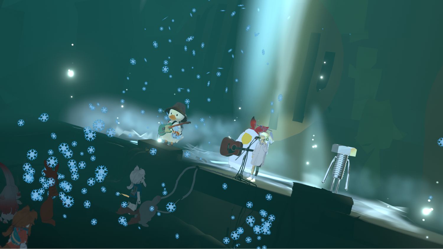 実際、『VRChat』にいる人はみんな自分の家にいるから、それぞれの“孤独”を持ち寄った上でなかよく遊んでいる感覚があるんですよね。それによく似合う風景が、自ずと“白い感じ”になるのかもしれません。明るいところには影があり、儚く弱いものが視界のどこかに映る、そういう表現がマッチする空気感があります。