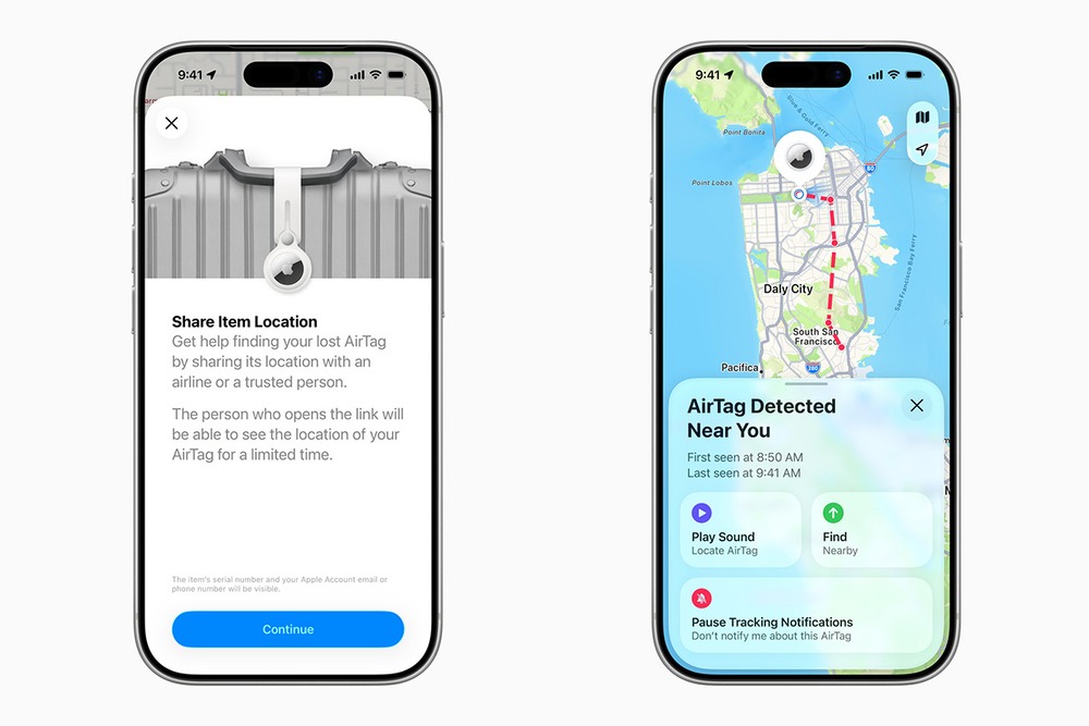 新しいAirTagは初代モデルと同じく、デバイスのBluetooth通信の範囲外であっても、他のユーザーが所有するAppleデバイスと連携し、位置情報を中継して遠距離から追跡することができる。 自分の車やバイクに装着しておけば、盗難時にも車両の場所を確認できる可能性が上がる。