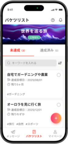<バケツリスト機能>「人生でやってみたいこと」を共有し、一歩を踏み出す