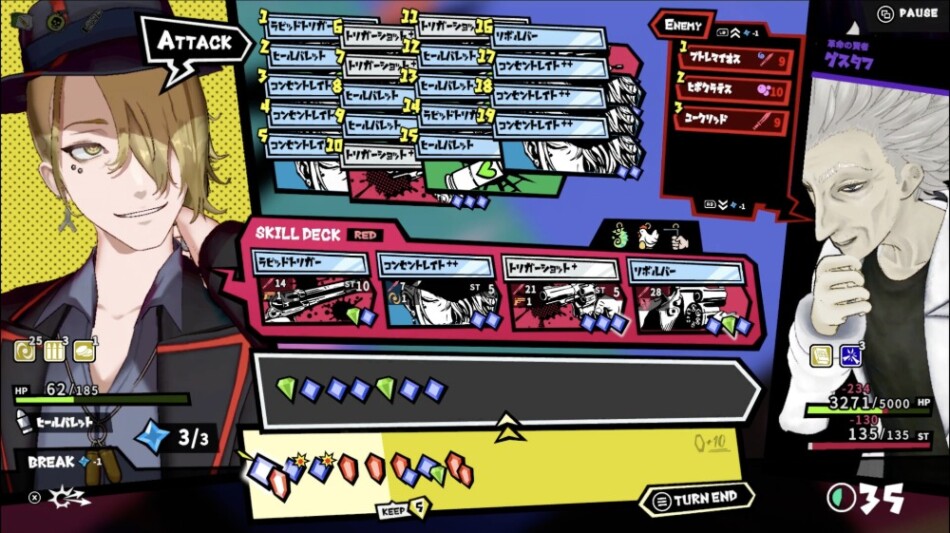 プレイヤーは制限時間内に最大火力を出すためのスキル選択とコンボをつなぐ判断をするほか、デッキに入れるスキルやジェムの色を変えて威力を出すための工夫ができる。