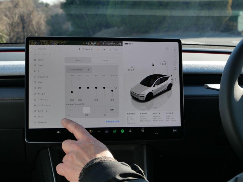 ウインカー以外ほぼ全ての設定や操作をタッチパネルから行うため、慣れが必要となる。いっぽう、エンターテインメントに関しては、テスラ車はオリジナルシステムを採用するためCarPlayやAndroid Autoなどには対応していないものの、AppleMusicやSpotifyなど配信サービス、Googleマップなどのアプリを用意しているため、それほど不便を感じることはなさそう。