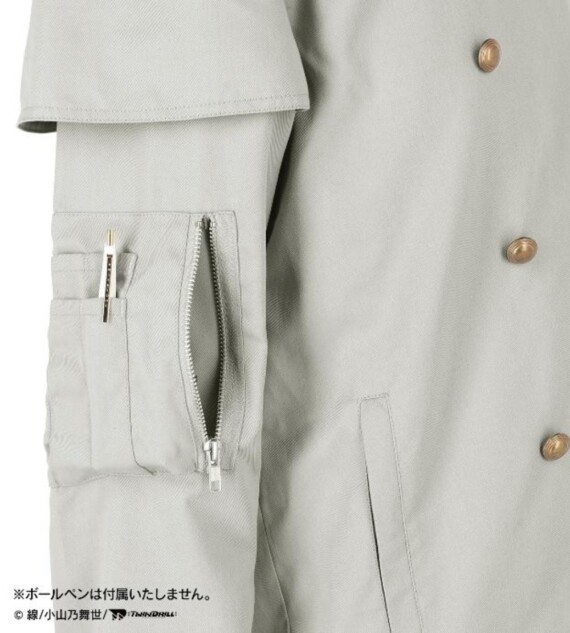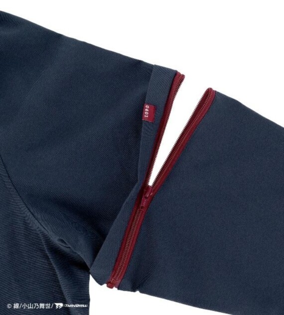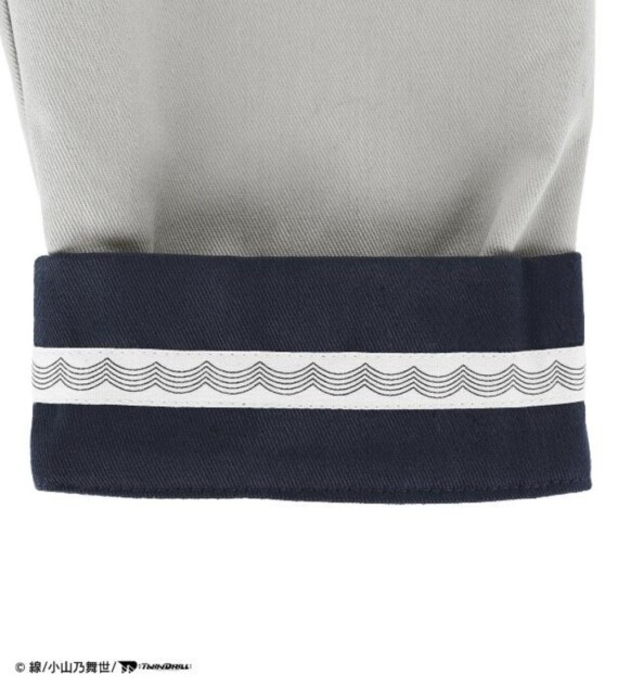 VP衣装モチーフのジャケットは、ワンポイント刺繍、背面には波形やプロフィールに加え、決め台詞「君はじつに馬鹿だな」を英字グラフィックでデザインされている。