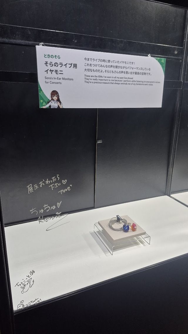 トップバッターのときのそらは「そらのライブ用イヤモニ」を展示しており、これまで長く使用してきた思い出を振り返った。夏色まつりは鏡を置いて「まつりす」としてファンをあげてみたり、フワワ・アビスガードは卒業してしまった天音かなたが実際に握った握力計など、人それぞれに違った思い出深さを楽しめるブースとなっていた。