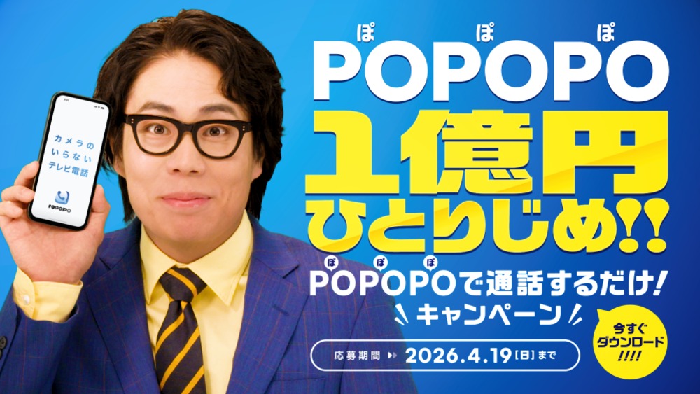 サービス開始を記念して、「1億円ひとりじめ!! POPOPOで通話するだけキャンペーン」も開催される。キャンペーン期間中に『POPOPO』で通話すると、1名限定で1億円が当たる。キャンペーンCMキャラクターには令和ロマンの髙比良くるまが起用された。期間は3月19日0時から4月19日23時59分まで。