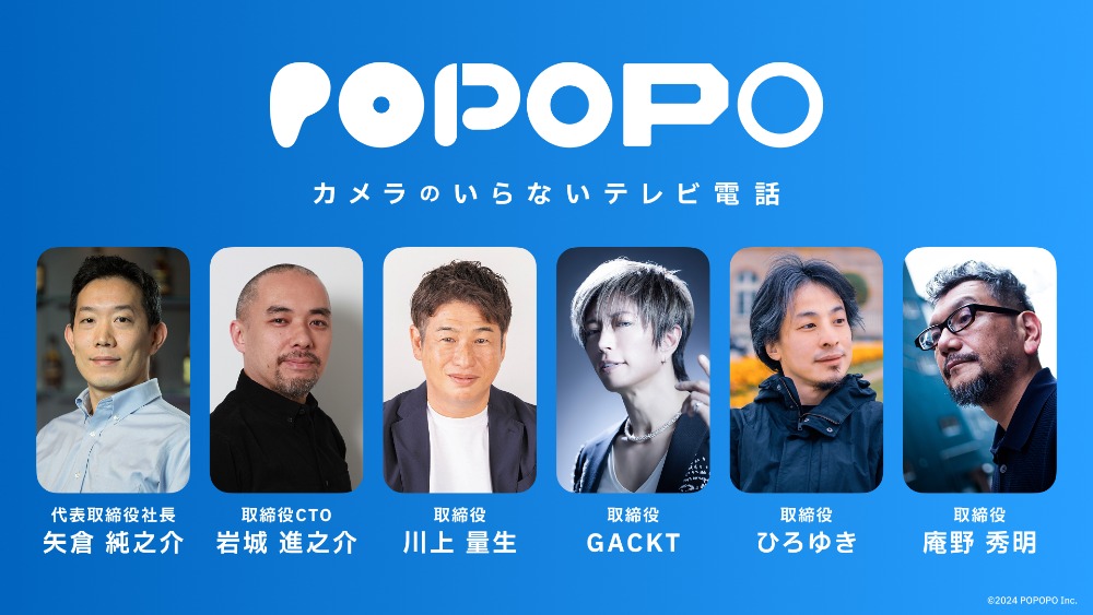 GACKT・ひろゆき・川上量生・庵野秀明らが取締役の新SNS『POPOPO』始動 “カメラのいらないテレビ電話”がコンセプト