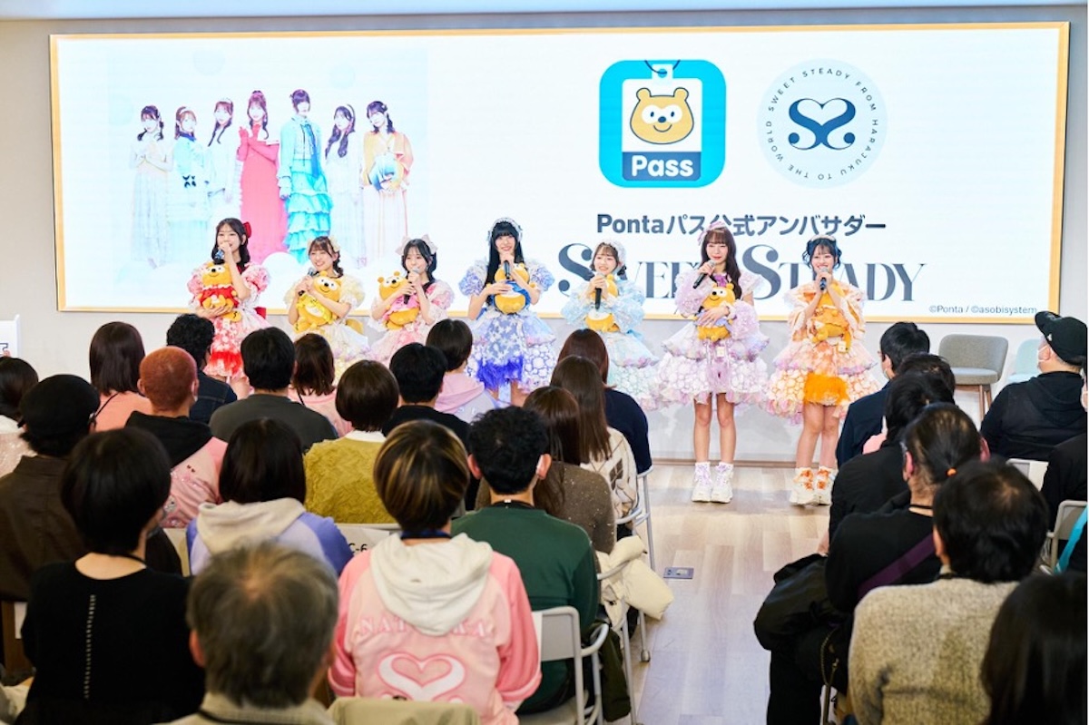 SWEET STEADYが、2月7日にKDDI株式会社高輪本社にてPontaパス1周年を記念した『SWEET STEADY特別企画コラボグッズお渡し会』を開催した。