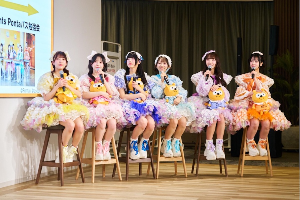 そして、白石によるPontaパスについての特別授業がスタート。すいでぃー(SWEET STEADYファンの総称)と一緒に、メンバーの奥田彩友、音井結衣、栗田なつか、塩川莉世、庄司なぎさ、山内咲奈も一緒に学ぶ形だ。