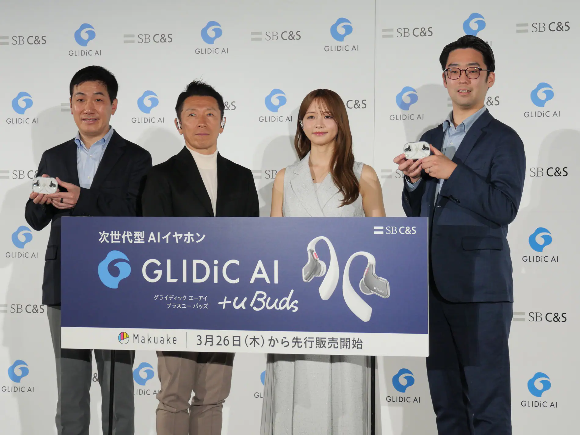 2026年3月24日、SB C&Sのオーディオブランドである「GLIDiC(グライデック)」はAIプロダクトブランド「GLIDiC AI」を新たに立ち上げ、同時時に次世代型AIイヤホン『GLIDiC AI +u Buds』を同日より応援購入サービスMakuakeで先行発売することを発表した。