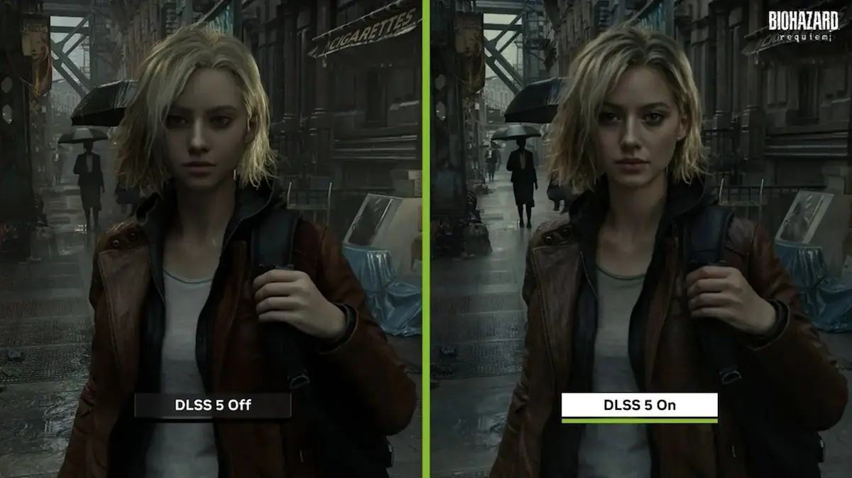 実際にNVIDIAが公開したデモ映像では、「DLSS 5」の適用前と適用後に『バイオハザード レクイエム』の主人公・グレースの顔がどれほど変化したのかが示されていた。両者を比べると、たしかに適用後の画面ではグレースの顔が実写さながらの質感になっているのだが、あまりにも顔の印象が変わっており、「もはや別人」だという声も上がっていた。