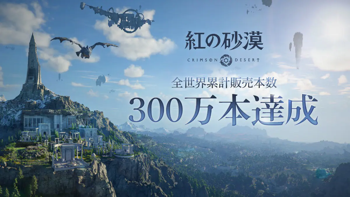 Pearl Abyss Corp.のオープンワールドアクションアドベンチャー『紅の砂漠(Crimson Desert)』が、3月20日の発売から4日で全世界累計販売本数300万本を達成したことが発表された。