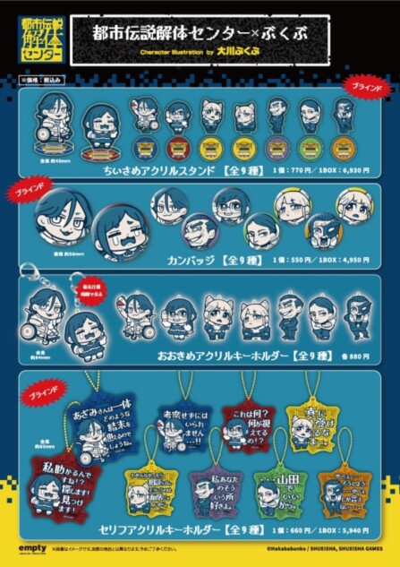 emptyは『都市伝説解体センター』より、大川ぶくぶが描き起こしたキャラクターのグッズの予約を開始した。