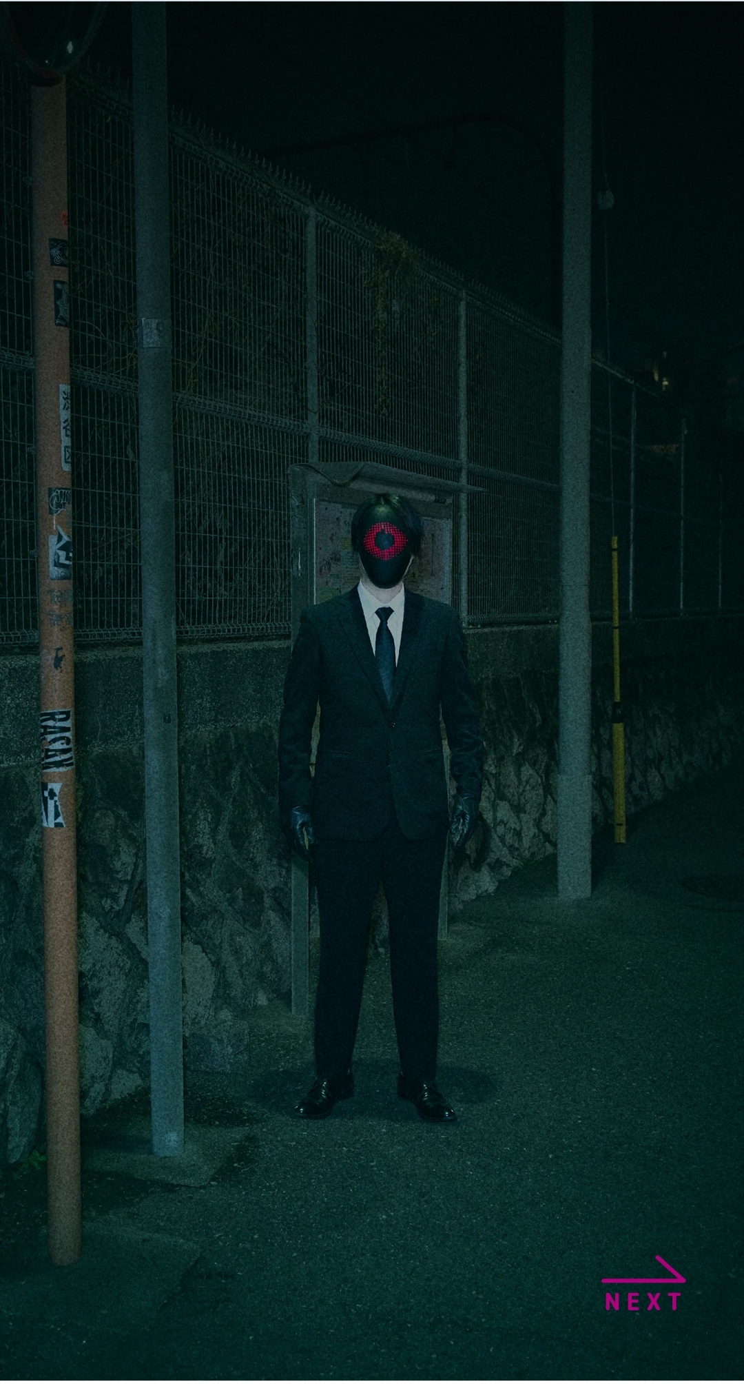 次の瞬間現われたのは、黒い仮面を被ったスーツ姿の男。「個人情報がばくモレしました」というアナウンスとともに「ミィツケタ…ミィツケタ…ミィツケタ…ミィツケタ…ミィツケタ…♡」というコメントが。そして近所で待ち伏せしていたその男と鉢合わせになって、あえなくゲームオーバーとなった。