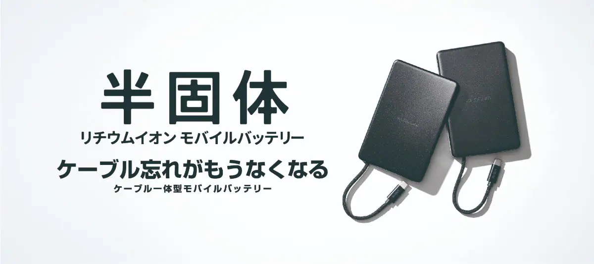 エレコムが、半固体リチウムイオン電池を採用したケーブル一体型モバイルバッテリーを4月上旬より順次発売することが発表された。