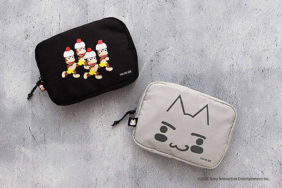 ポーチ(2,750円(税込)、2柄)は、ゲームやPC周りのデバイスやコードを収納できる仕様だ。『どこでもいっしょ』のトロと『サルゲッチュ』のデザインが新たに加わった。
