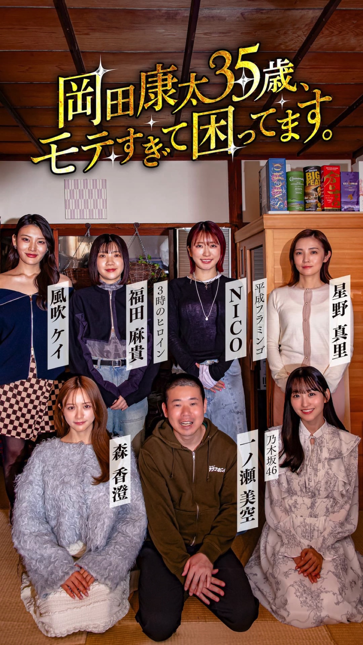 共演者はいずれも“本人役”として出演。森香澄、一ノ瀬美空(乃木坂46)、福田麻貴(3時のヒロイン)、風吹ケイ、NICO(平成フラミンゴ)が岡田に惹かれていく女性を演じるほか、星野真里が“昔から憧れていた近所のお姉さん”という設定のほぼ本人役で登場する。