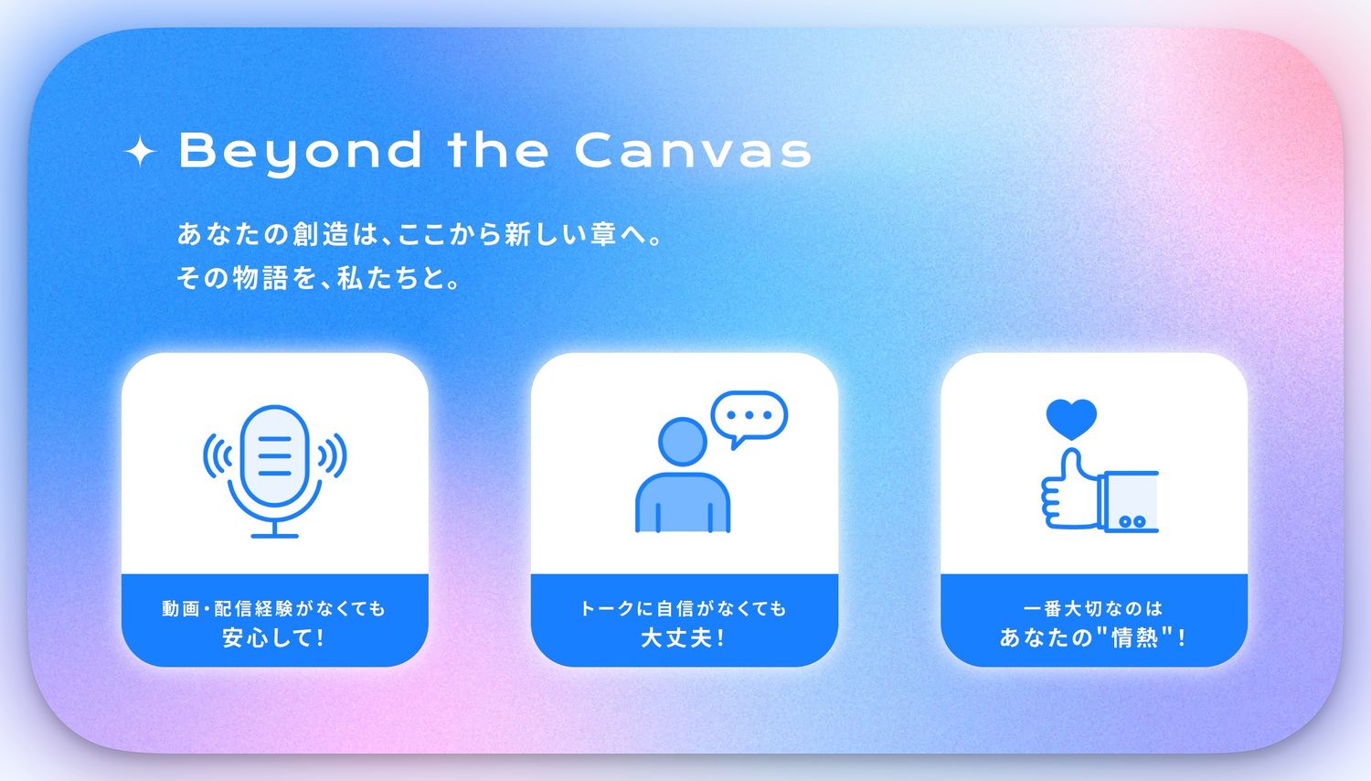 春田:ご応募いただけます。その方が最も輝く形で活動できるようにプロデュースしていきたいので、活動内容や実現したいストーリーに合わせて、ビジュアルや表現のあり方もいっしょに検討できればと考えています。