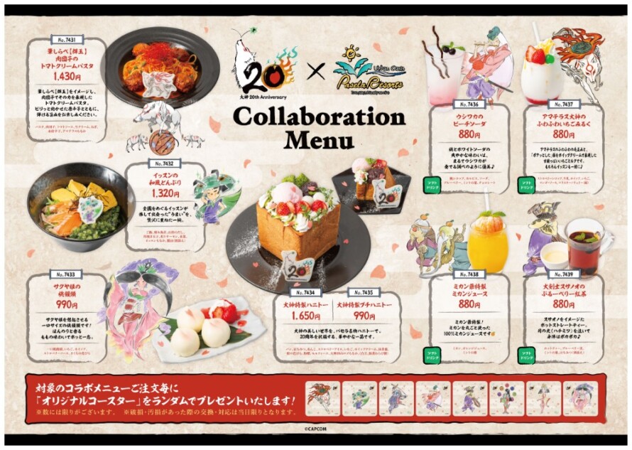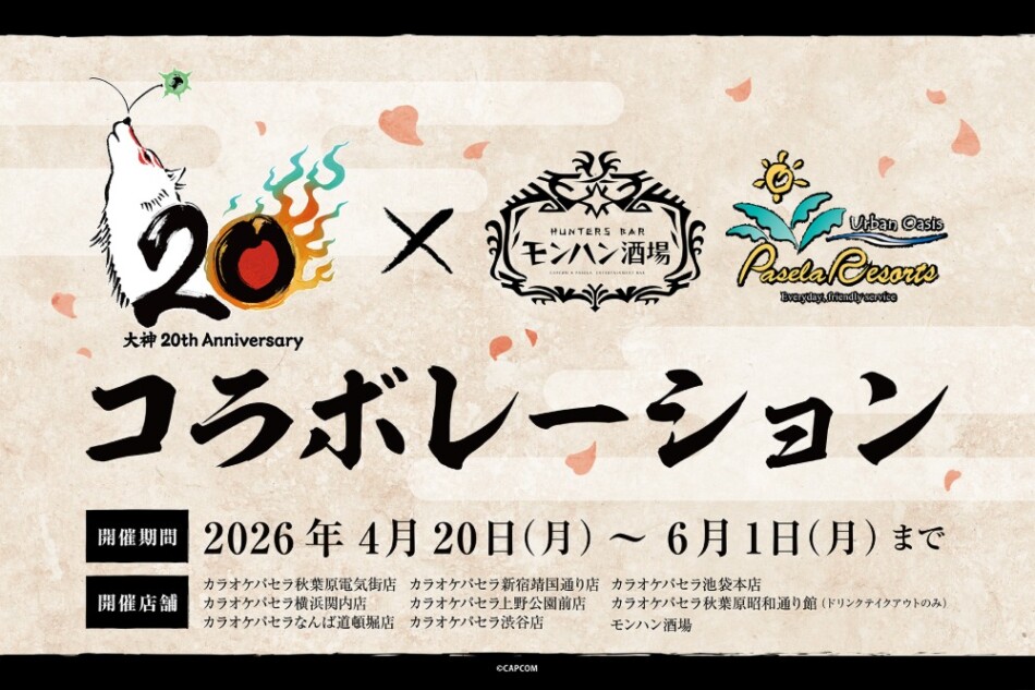 また、「カラオケパセラ」都内・横浜・大阪の計8店舗と「モンハン酒場」(東京・大阪)では、4月20日から6月1日まで『大神』とのコラボレーションを開催される。