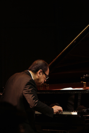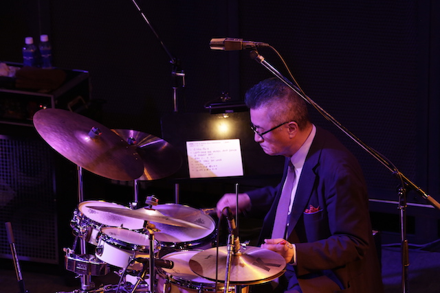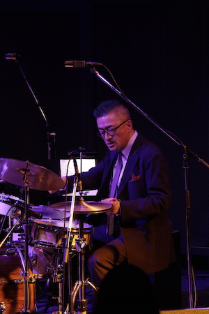 大野のオリジナル曲「MISTY TWILIGHT」、フランク・シナトラ他の名演で知られる「MY ONE AND ONLY LOVE」の後、メンバーが紹介された。「最高のベーシスト、上村信!」、「最高のドラマー、市原康!」……簡潔だが、これ以上に雄弁なフレーズがあるとは思えない。市原(Dr)は初代You & Explosion Bandに在籍経験があり、現在は大野雄二トリオのほかにYuji Ohno & Lupintic Sixでも活躍するオールラウンドな名手。このトリオではスティックよりもワイヤーブラシ(より繊細な音を出すために使われる)を多用し、陰影に富んだプレイでメロディラインを大いに引き立てた。上村(Ba)は、このトリオに加入して3年目を迎えた。「本当に縁の下の力持ちという感じ。すごく良心的なベースを弾く」と、大野も賞賛を惜しまない。厚みのある音色、指弾きと弓弾きの双方を用いてのアプローチは、ウッドベースならではの快感に満ちている。
