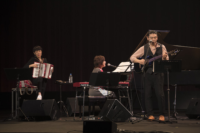 続いては清水ミチコと弟の清水イチロウ。今年7月に行われた細野の浅草公会堂公演にも出演した2人は、矢野顕子、細野晴臣のモノマネで「相合傘」(はっぴいえんど)をデュエット。上手さとおもしろさが共存するパフォーマンスで観客を魅了した。
