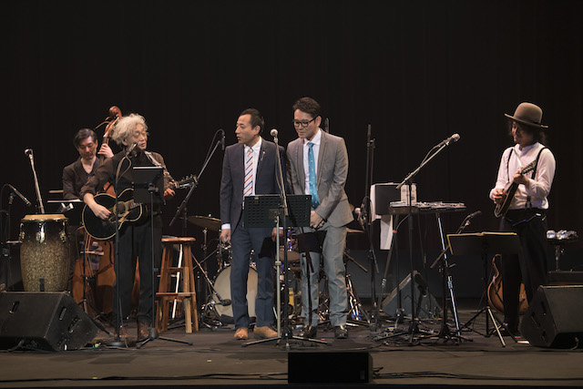 アンコールではまず、細野のソロデビュー作『HOSONO HOUSE』収録曲「相合傘」を抑制の効いたシックなバンドサウンドとともに披露。さらに細野、バンドメンバーのほか、コシ、野村、斎藤、そして、ナイツ、清水ミチコ・イチロウが揃い、「恋は桃色」をセッション。この日限りの貴重なコラボレ—ションが実現した。2000年代に入ってから、20世紀の音楽の奥深い魅力を追求し、新しい表現に結びつけてきた細野晴臣。“知っているはずなのに知らない音楽”をテーマに掲げたアルバム『Vu Jà Dé』、そして、今回のツアーで細野は、その大きな成果を我々に示してくれたのだと思う。