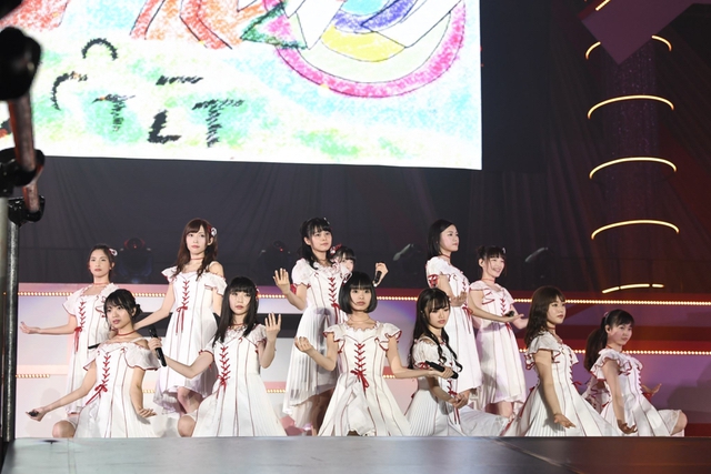 ここまでの楽曲で、スクリーンに映し出された加藤の絵には、鮮やかな虹色が加わり、荻野はそれを眺めて「無限の可能性があるってことだよね!」と笑ってみせた。それを象徴するかのように、「NGT48」ではドラフト3期生が呼び込まれ、研究生が『AKB48グループ リクエストアワー セットリストベスト100 2018』で3位にランクインした「下の名前で呼べたなら・・・」を歌うなど、“次の可能性”を見せることも忘れない。