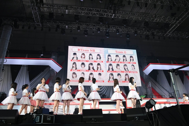 その充実を裏付けるかのように、アンコールでは「研究生全員昇格」「チームG発足&組閣」とポジティブな発表が続く。北原里英の卒業後を担うチームNIIIの新キャプテンには加藤が、副キャプテンには荻野が抜擢された(チームGの人事は初日公演で発表)。意外だという声もいくつか聞いたが、筆者は決してそうは思わない。新潟出身メンバー・暫定センターとして活動初期から矢面に立ち、デビュー以降は悔しさも味わった彼女だからこそ、グループ全体を俯瞰し、この日の絵のようにグループを表現することもできる。本人は自身を「頼りない」と言うが、ワンマンで引っ張るグループよりも、周りが支えて一丸となる集団のほうが、今のNGT48が持つカラーには合っているし、終演後アナウンスの「NGT48の目標は朱鷺メッセだけじゃない、大きなドームに立ちたい、AKB48を超えて見せたいです!」と言い放つ度胸にも胸を打たれた。そうして未来への期待を膨らませながら、単独コンサートは終了した。