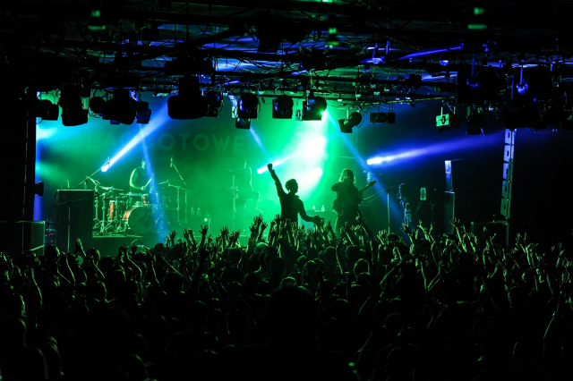 筆者が見たのは2日目の「黒の日」。あらかじめ演目(演奏する楽曲)が公開されているので、ファンのイントロ一音一音への反応が凄まじい。ちなみにこの日、メンバーはブラックスーツなど、かなりフォーマルな出で立ちでステージに登場し、松川ケイスケ(Vo)にいたってはこの日初めて前髪を上げてライブに挑んだという。ドラキュラ伯爵やモンテ・クリスト伯を想像させるビジュアルであった。選曲は2009年『短編傷説』収録の「苺」から、唯一非公開だったアンコールでの新曲「狂喜乱舞」(8月22日リリースのメジャー4thアルバム『若葉ノ頃』収録)まで、新旧のレパートリーを散りばめていた。いわばキラーチューンばかりの選曲であるし、基本的にハードかつエッジーな攻めの選曲なのだが、今のLACCO TOWERの各楽器の音の良さと、ボーカルを含めたバランスの良さにこの日は特に圧倒された。