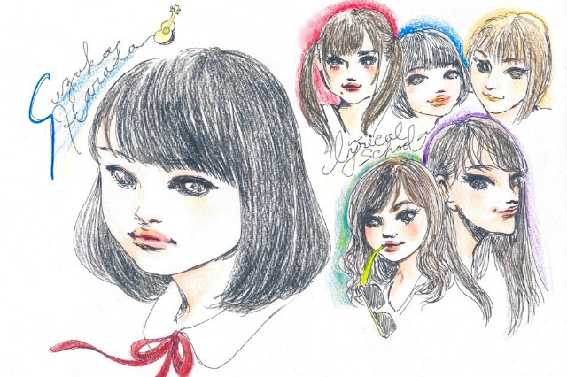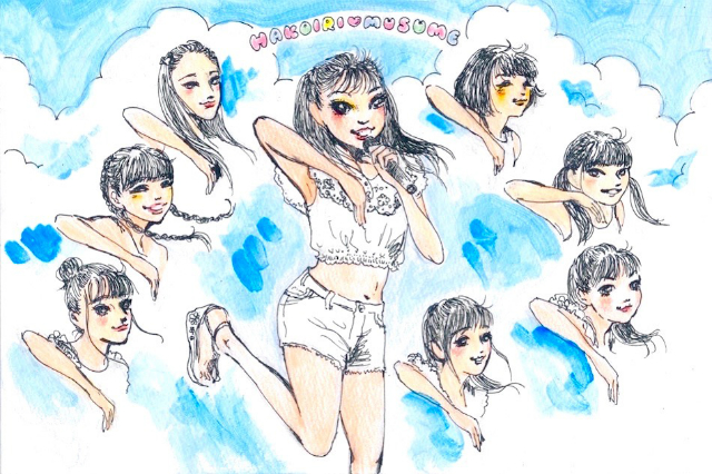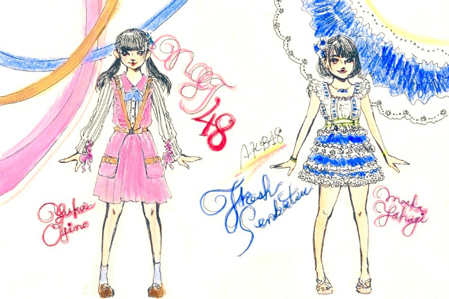 初めて観るフレッシュ選抜は、このTIF限定の選抜メンバー。名前の通りに全員が生き生きとして、「この場に出られた喜び」に溢れているステージでした。ボブヘアの美少女が気になり、似顔絵を描いて「この子は誰だろう」とツイートしたら、AKB48ファンの方から「研究生の矢作萌夏さんではないでしょうか」と、すぐに教えていただけました。現代ってすごい……いや、48ファンの、層の厚さがすごい! と思った瞬間です。強すぎる真夏の光線を反射するような、セラミックホワイトの多彩なレース地の組み合わせ、クリア素材のベルトに、ブルーと蛍光イエローのアクセントで統一された、スポーツドリンクのパッケージのように爽やかな衣装。ディティールが凝っていて、さらに16人のメンバーそれぞれに少しずつ形が違い、見ていてうっとりする可愛さでした。