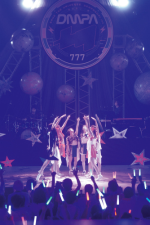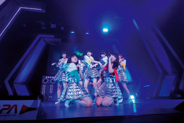 でんぱ組.incのライブパフォーマンスというと、メンバーが演技をしながら入り乱れてカオスになっていく、いわゆる“わちゃわちゃ感”が大きな魅力で、7人になってその部分のおもしろさがいっそう増した。メンバー構成的には旧体制から1人増えただけなのに、こんなに違うのかと思えるくらいだ。「ギラメタスでんぱスターズ」ではステージを走り回るスピーディーなアクションの中で鹿目凛がバスケットボールのゴールを決めていたりして、雑然とした楽しさがよく表れている。さらに「おやすみポラリスさよならパラレルワールド」での、ダークファンタジー的な世界観を表したような寸劇風パフォーマンスは極めて斬新で、すべてが意味深としか言いようのない独創的な振り付けに惹きつけられてしまう。この曲など、今の7人でなければできなかったと思える。