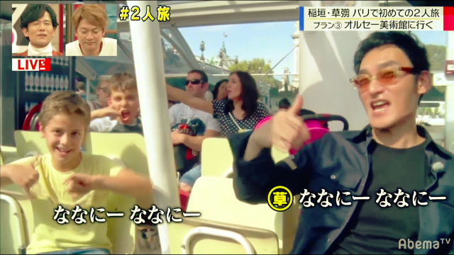 草なぎと稲垣のパリ2人旅に至っては、まさに神回とも呼べる珍道中。自由奔放な草なぎが異国の地にも関わらず日本語でどんどん話しかけ、最終的には言葉の通じない子どもたちと「ななにー、 ななにー」と謎の意気投合。その様子を、日傘男子の稲垣が静かに笑っている、という姿に頬が緩まずにはいられない。