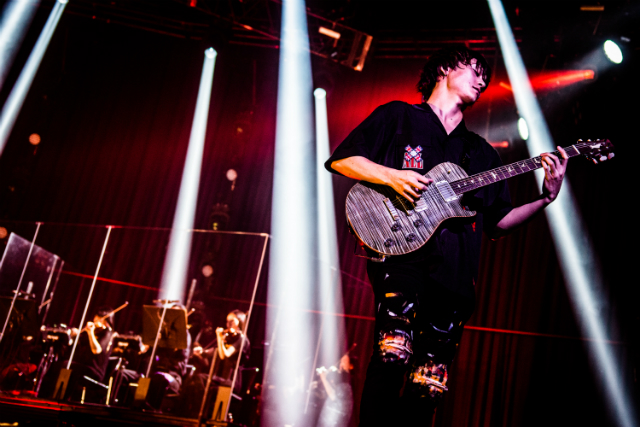 ストリングスとの相性も抜群だった「Change」を経て、ONE OK ROCKらしいアップチューン「Ending Story??」へと移行すると雰囲気は一変する。Toru(Gt)が激しいギターリフを刻むと、フロアの熱気は一気に加速。モッシュはサークルなども目にすることができるくらい、会場の空気感は通常の彼らのアリーナライブと一切変わらないものとなった。さらに3曲目には「欠落オートメーション」という意外な選曲に、フロアからは大歓声が湧き上がる。この時点で、今回のツアーは最新モードのバンドを見せるものではなく、ONE OK ROCKというバンドがこれまでに生み出してきた楽曲が、オーケストラとどのような化学反応を起こすのか、その実験の場であることに気づかされた。