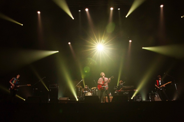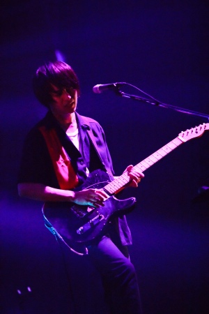 サポートメンバーとして参加しているキーボードの浅野尚志(Key/Violin)がベースを担当し、ベースの坂倉心悟はギターを担当。つまり、ステージ前には光村龍哉(Vo/Gt)、古村大介(Gt)、坂倉のトリプルギターが揃うという光景が広がることになり、音の厚みもさることながら、バンドの放つ熱量のすさまじさに冒頭から圧倒される。