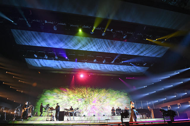 まず、開演前のBGMがない。完全な静寂からライブは始まったのだ。最終日には1万4000人が詰め寄ったという大きな幕張メッセ国際展示場9〜11ホールが一斉に静まり返るとさすがにただならぬ雰囲気となる。すると、彼女のひとつひとつの言葉に緊張感が宿り、歌声の一音一音に耳が研ぎ澄まされる。なるほどこの静寂でさえライブ演出の一部なのだろう。