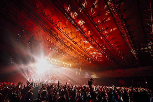 「久しぶりのライブでどうなるかと思ったけど、めちゃくちゃ楽しいです! みんながバラバラの動きで好きなように踊ってくれてるのも嬉しい。バラバラに楽しんだ後は、みんなで同じダンスを踊ってみるのはどうでしょうか?」という言葉に導かれたのは、大ヒット曲を連発。まずは、エキゾチックなイントロ、高揚感を誘うメロディライン、圧倒的な解放感をたたえたバンドサウンドが鳴り響き、ほとんどの観客が揃いの振り付けで踊った「恋」。そして、“ジーッ”というアナログシンセのノイズ音からはじまり、いきなり真夏の日差しの下に誘い込まれるような音像によって、フロア全体の温度がグッと上がった「SUN」。どちらもまちがいなく星野の代表曲であり、10年代を象徴するナンバーなのだが、ポップスのセオリーを逸脱するようなアレンジ、サウンドメイクには(何度ライブで聴いても)ビックリさせられる。このバランス感覚もまた、彼の音楽の大きな魅力なのだ。