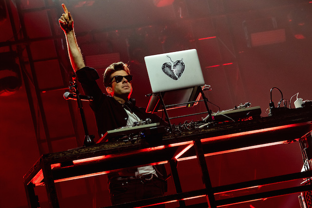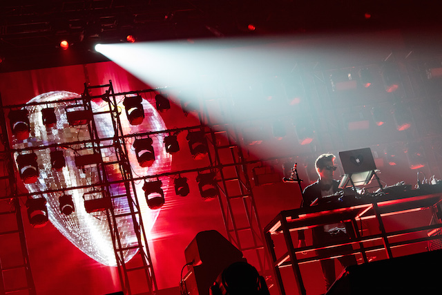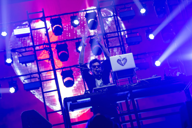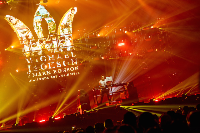 最初のピークを演出したのは、マイケル・ジャクソンのトリビュート・ミックス。「今夜はドント・ストップ」「ビリー・ジーン」などをつなぎ、観客の歓声を集める。さらにエイミー・ワインハウスのソウルフルな歌が心に響く「ヴァレリー」も。そして、フロアをもっとも沸かせたのはやはり「アップタウン・ファンク」。ドゥーワップ的なコーラスが聴こえてきた瞬間に大歓声が沸き起こり、80’sダンスミュージックをアップデートさせたトラックによって会場全体が巨大なダンスフロアに変貌した。