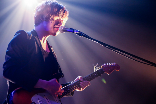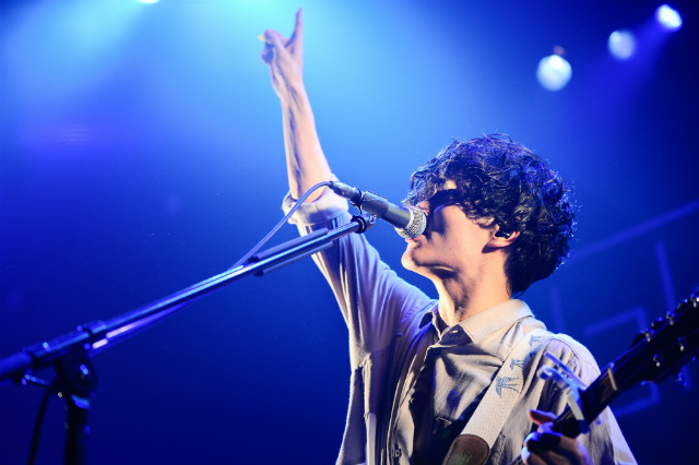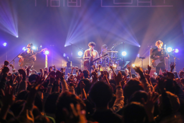 SEが流れ、スクリーンに白井將人(Ba)、片山僚(Dr)、齋木孝平(Gt/Cho)、渡井翔汰(Vo/Gt)とメンバーの名前が一人ずつ紹介されると、「愛おしい瞬間を探しに行こう!」と渡井が爽やかに呼びかけ、「ヒーロー」で本編スタート。いきなり高揚感溢れるナンバーで、満杯の観客で埋め尽くされたフロアを明るく照らす。続く「ステラ・ノヴァ」に入ると、サビを一緒に歌い、拳を突き上げて騒ぐ観客の数がみるみる増えていった。それから一気にギアを上げ、アップテンポな「朝を迎えに」をここで披露。テクニカルにして繊細な齋木のギターワーク、ブンブンとうねりを上げる白井のベースなど、4人の熾烈なバンドアンサンブルを見せつけ、会場を焚き付けていく。