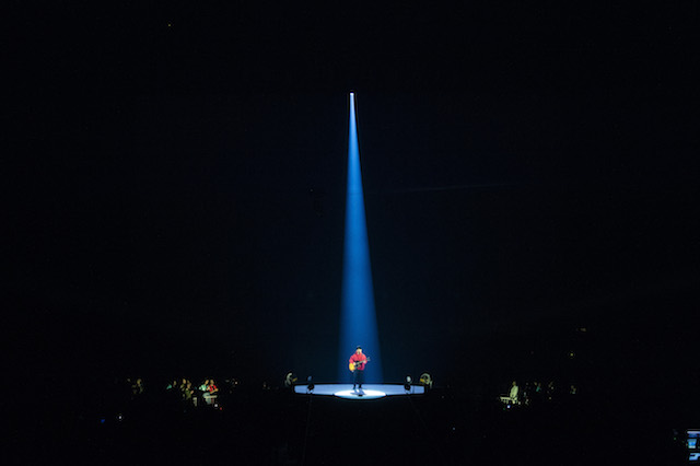 しかし、今回の公演で特筆すべき場面はいきなり冒頭に訪れる。それがイントロダクションとしての「歌を歌うときは」と「Pop Virus」の2曲だ。開演と同時に暗転し、会場中央に彼が登場してひとりで弾き語りし始める。静かに始まる弾き語りから「Pop Virus」のビートとともに、この、なにかがじわじわと侵蝕していくような雰囲気の幕の開け方が後半のカタルシスを生み出す土台のように機能していた。この“感染”していくようなスタートにこそ今回のツアーの真髄があるように思う。