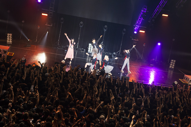 続いて、アユニの雄叫びから始まる「遂に死」で両手を左右に振る振り付けでフロアとの一体感を増したのち、エモーショナルな歌詞が印象に残る「PAiNT it BLACK」、曲中で客席とのシンガロングが目立つ「stereo future」、一本指を掲げる振り付けでフロアとシンクロする「FOR HiM」を歌い上げ、MCタイムに。