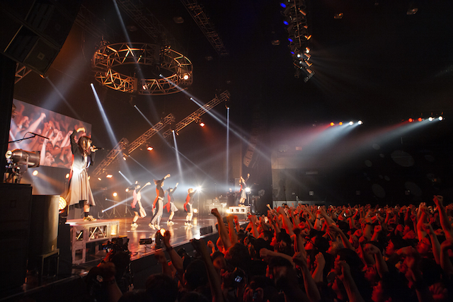 いったんのMCを挟み、会場はわずかな落ち着きを取り戻したが、ここから今回のツアーに秘められたテーマ“二面性”を彷彿とさせるパフォーマンスが加速する。
