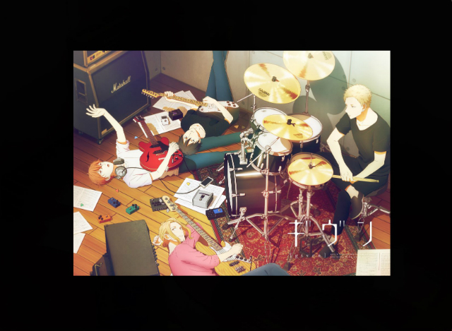 アニメ『ギヴン』は、新書館『シェリプラス』に連載中の漫画が原作で、これまでにコミックが5巻発売されている。原作者のキヅナツキにとって、初の長編作にして代表作として名高い。物語は、高校生離れしたギターの腕前を持つ上ノ山立夏が、佐藤真冬の歌声に惚れ込み、自身のバンド“ギヴン”と共に成長していくというもの。しかし、単なるバンド物語でない。バンドを軸に切ない恋愛模様が描かれており、“ノイタミナ”初のBLアニメとして、早くから話題を集めていた作品だ。楽器や演奏シーンの描写の細かさと、ガラスのように脆く繊細ながら鋭さを持った、真冬のむき出しの言葉(歌詞)も読者の評価が高く、アニメでどう描かれるかにも熱い視線が注がれている。