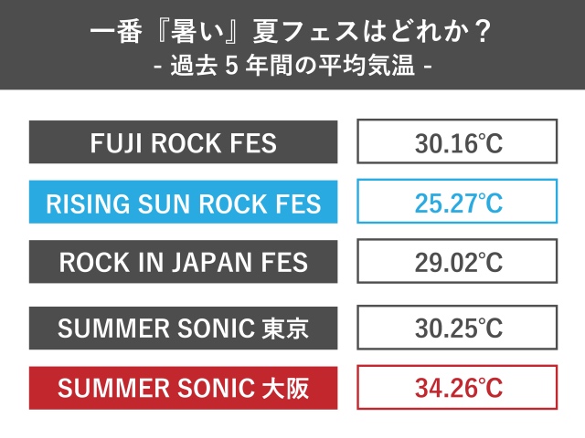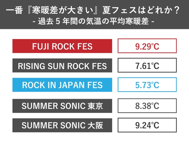 では、そんな「寒暖差」が最も大きい夏フェスはどれだろうか?