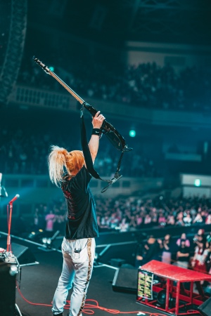 「大きな会場でよくやる、アレやっていい?」と、1階スタンド、2階スタンド、アリーナと続けて煽っていくマモ。「今日はバンドマンも沢山来てくれていると思うんですけど、どうですか? うらやましいですか?」煽るように続けていく。「いいだろう? バンドマンにとってアリーナはひとつの憧れ。どうやったらここに立てるのか教えてやろうか? まず“ライブ後のツーショット撮影会”をやめろ! ヴィジュアル系はミステリアスさを大事にしなきゃ!」と皮肉をチクリ。